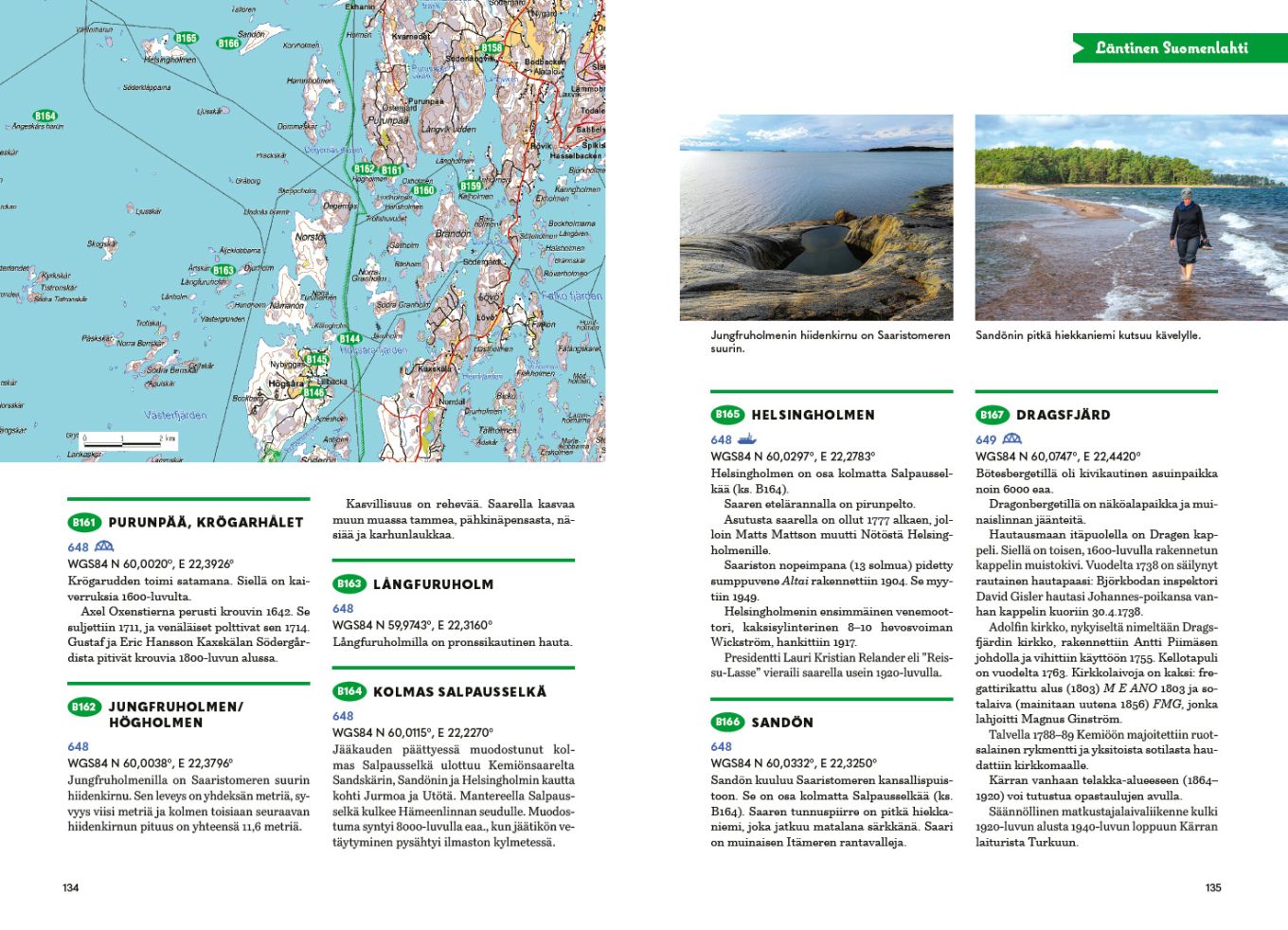 Opas on kaivattu päivitys vuonna 2014 julkaistuun ja pitkään loppuun myytynä olleeseen teokseen. Pääosan kohteista on alun perin kerännyt useita veneilyoppaita ja veneilijän nähtävyyskirjoja kirjoittanut Kaj-Erik Löfgren.