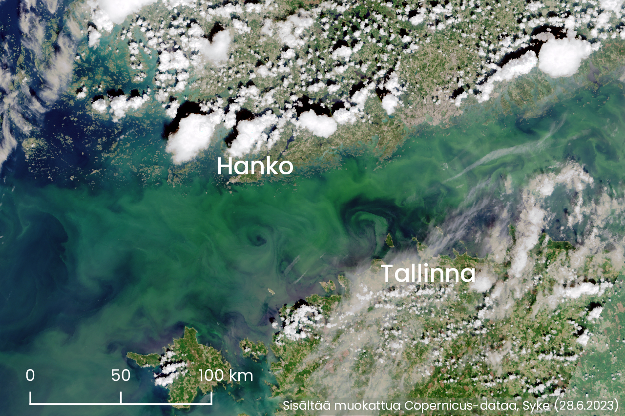 Satelliittikuvilta on havaittu avomerialueilla runsaasti sinilevää pinnan alaisissa kerroksissa Suomenlahdella, Itämeren pääaltaalla ja Ahvenanmerellä. Suomenlahdella sinileväalueet ovat laajentuneet ja siirtyneet viikon aikana lähemmäksi Suomen rannikkoa. Osa sinilevästä on jo noussut pintaan Suomenlahden suulta Suursaareen ulottuvalla alueella.