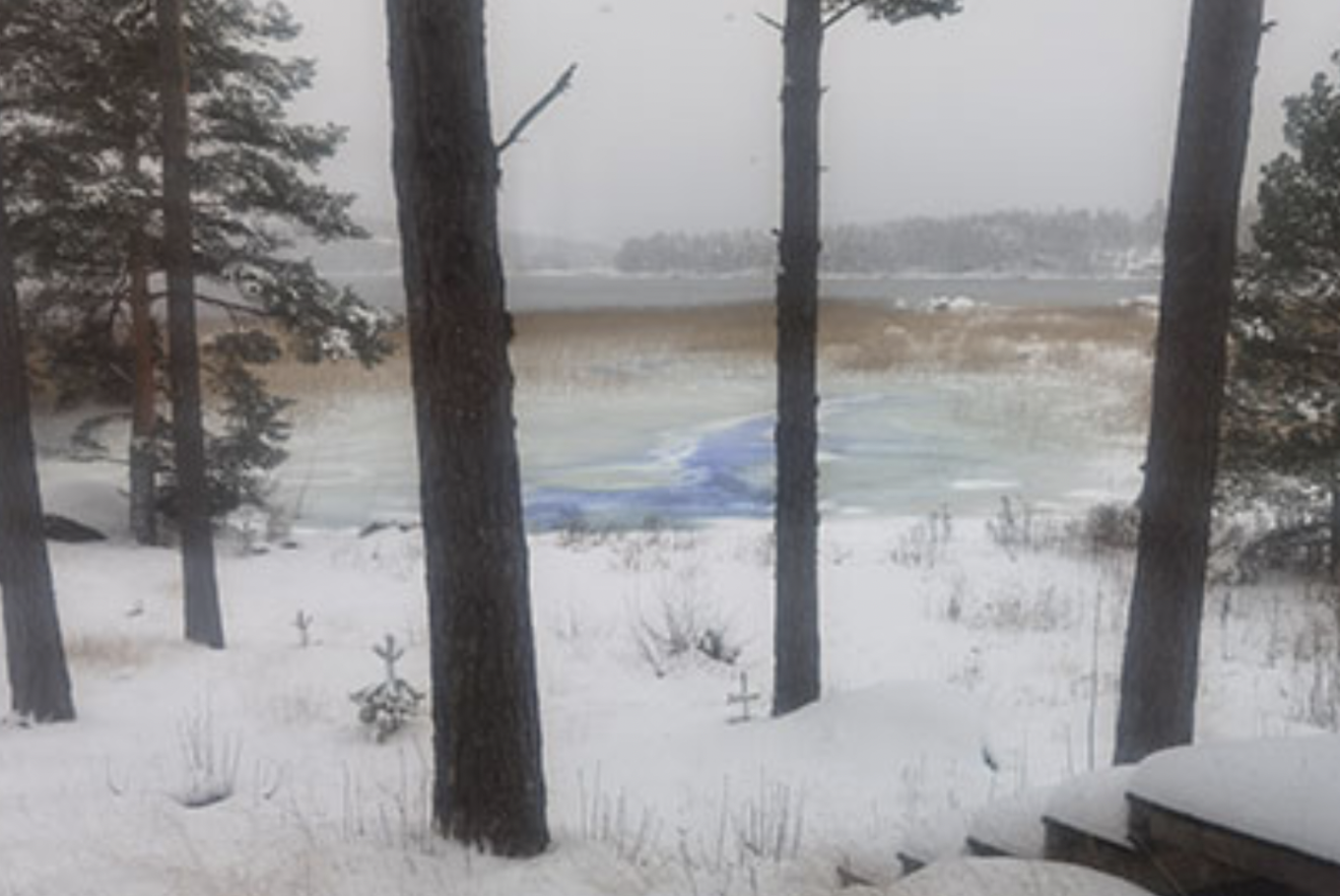 Suomen ympäristökeskukseen on kuluneella viikolla ilmoitettu siniseksi värjäytyneestä jäästä Suomenlahden rannikolta Helsingin edustalta ja Virolahdelta.