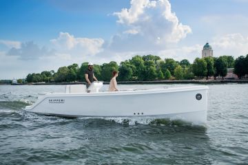 Q Yachts ja Skipperi ovat omalla tavallaan molemmat ohjaamassa veneilyä uusille urille: Skipperi vuokra- ja yhteiskäyttövenepalveluillaan ja Q Yachts sähköveneillään. Yhteistyölle on siis hyvät eväät, ja se alkaa Q Club -sähköveneellä, joka on esillä Uivassa Skipperin maaosastolla. Q Club on Skipperin Fleet-palvelun yhteiskäyttöveneeksi kehitetty täyssähkövene, josta tulee myös kuluttajamarkkinoille tarkoitettu Q 24 -malli. Solakkarunkoisen, ePropulsionin 10-hevosvoimaisella sähköperämoottorilla ja 27 kWh:n akulla varustetun veneen toimintamatkaksi lupaillaan kuuden solmun matkanopeudella yli 70 meripeninkulmaa, minkä luulisi riittävän jo ylenpalttisesti yhden päivän veneretkeilyyn.
