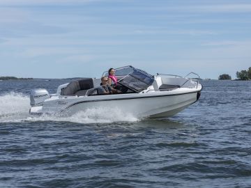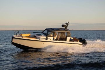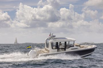 Käytännössä sähköistyminen näkyy siten, että Uivassa on esillä jo kymmenkunta sähkövenettä, tosin tilanne elänee aivan viime hetkeen saakka. Aloitetaan uutuusveneiden ennakkokavalkadi siis trendin mukaan sähköveneistä. Kovin uutuuskuhina käy kuitenkin noin kahdeksan metrin mittaisten perämoottoriveneiden luokassa, johon pukkaa avo-ohjaamollisia ja T-top-katoksella varustettuja daycruiser-malleja, sekä yhteysajoa ja/tai retkeilyvalmiuksia painottavia hyttiveneitä.
