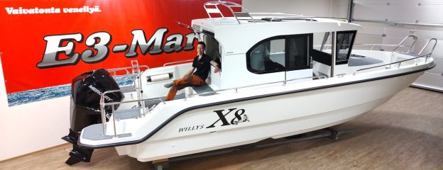 Willy’s on pohjanmaalla toimiva pienvalmistaja, joka lähtee mukaan kahdeksanmetristen hyttiveneiden luokkaan. X8 on niin sanotusti ympärikuljettava eli ohjaushytin ja keulakajuutan ympäri pääsee esteettä kulkemaan. Matkustamo on viisipaikkainen, keulassa on parivuode ja punkan alla paikka wc-istuimelle. 225-hevosvoimaisella V6-Mercuryllä hinnat alkavat kilpailukykyisesti alle 100 000 eurosta. Sähkötoiminen lasikattoluukku kuuluu vakiovarustukseen.