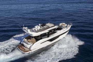 Galeon 500 Fly ei ole varsinaisesti uutuus, mutta pitäähän se Uivan suurimpana veneenä mainita. Ja vertailukohteitakin löytyy, sillä vieressä on Galeon 470 Sky ja samalla laiturilla Princess F45. Galeon on tullut tunnetuksi laadukkaasta sisustuksen viimeistelystä ja teknisistä innovaatioista kuten avattavista laitaterasseista, sähköisesti säätyvistä keulakannen oleskelutiloista ja niin edelleen.