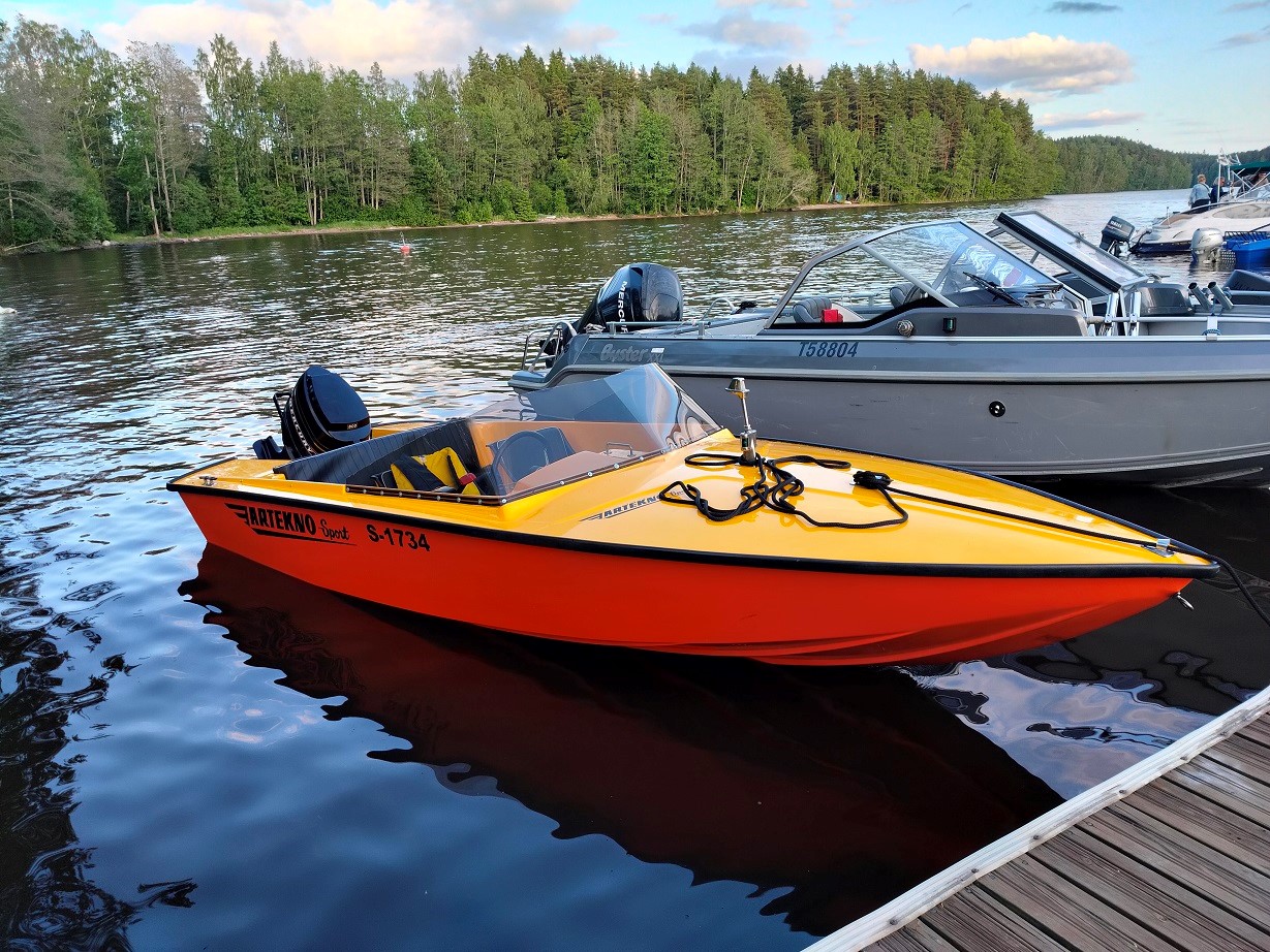 Venemaalialalla työskentelevä tuusulalainen Lauri löysi huomiota herättävän hienon ja edullisen keltaisen moottoriveneen nettiveneestä kaksi vuotta sitten matkallaan purjeveneelleen. Kouluvuosien kaveria koneinsinööri Pasia piti vain hiukan suostutella mukaan projektiin, ja nyt on venettä kunnostettu ahkerasti ja pikkutarkasti pari vuotta. Purjehtimassa kaverukset ovat käyneet jo yli 10 vuotta yhteisellä purjeveneellä, mutta nyt kahtena viimeisimpänä kesänä he ovat päässeet myös veneilemään upealla keltaisella moottoriveneellään.