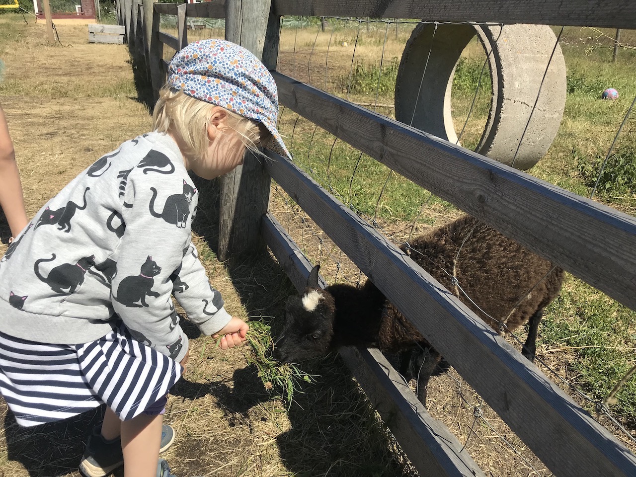Meille Farmors Cafe on entuudestaan tuttu paikka, ja retkikohteeksi se valikoitui naisistomme kolmivuotiaan tytön takia. Tiesimme pienen leikkipaikan, laitumen karitsojen ja pihapiirin kanien saavan ajan kulumaan myös perheen pienimmällä.