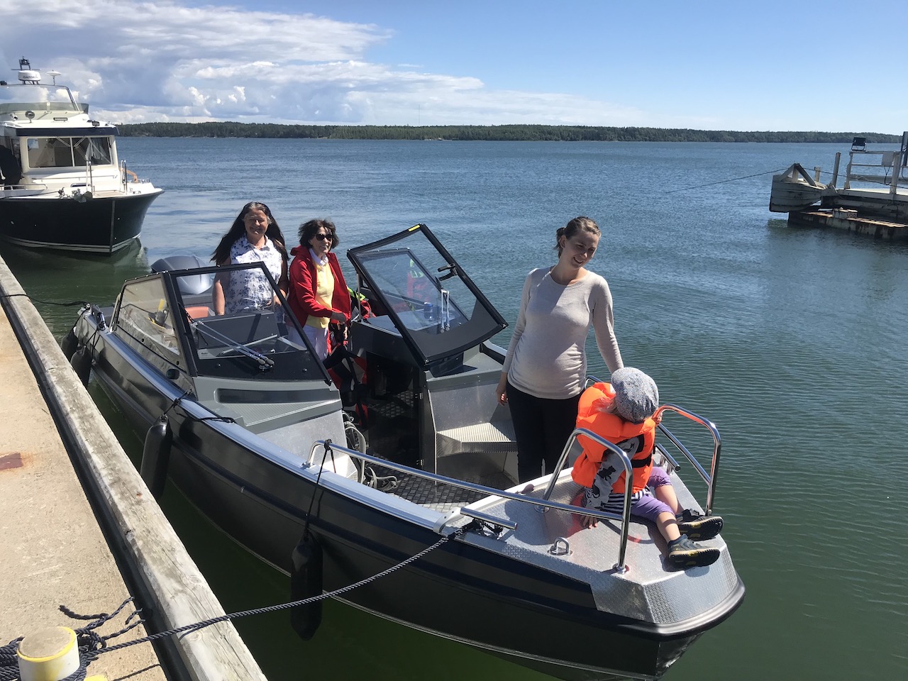 Högsåraan on kesäpaikaltamme reilun puolen tunnin ajomatka, joka taittuisi sopivasti rantaamme ajautuneella ja 225-hevosvoimaisella Yamahalla ladatulla uuden sukupolven Buster Magnumilla. Päätimme siis laittaa neljännen sukupolven Magnumin neljän sukupolven testiin. Meistä matkaan lähteneistä perheen jäsenistä kaksi veneilee aktiivisesti, yksi ei enää ja yksi ei vielä, mutta ovat kyllä mukana.